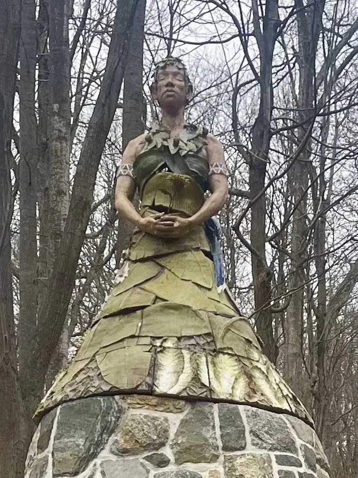 “Gaia Formosa” – The Elegant Lady symbolizes Mother Taiwan taking root in a foreign land, inspired by a 1930s photograph of a young Truku mother. Her form, composed of iconic Taiwanese plants, reflects the island’s natural beauty, while her skirt interweaves symbols of Taiwan’s social movements. Holding a rose growing from stone—an homage to Yang Kui’s The Rose That Cannot Be Crushed—she embodies resilience and cultural heritage. The title combines “Gaia,” the Earth Goddess, with “Formosa,” meaning “beautiful island,” honoring Taiwan’s enduring spirit.